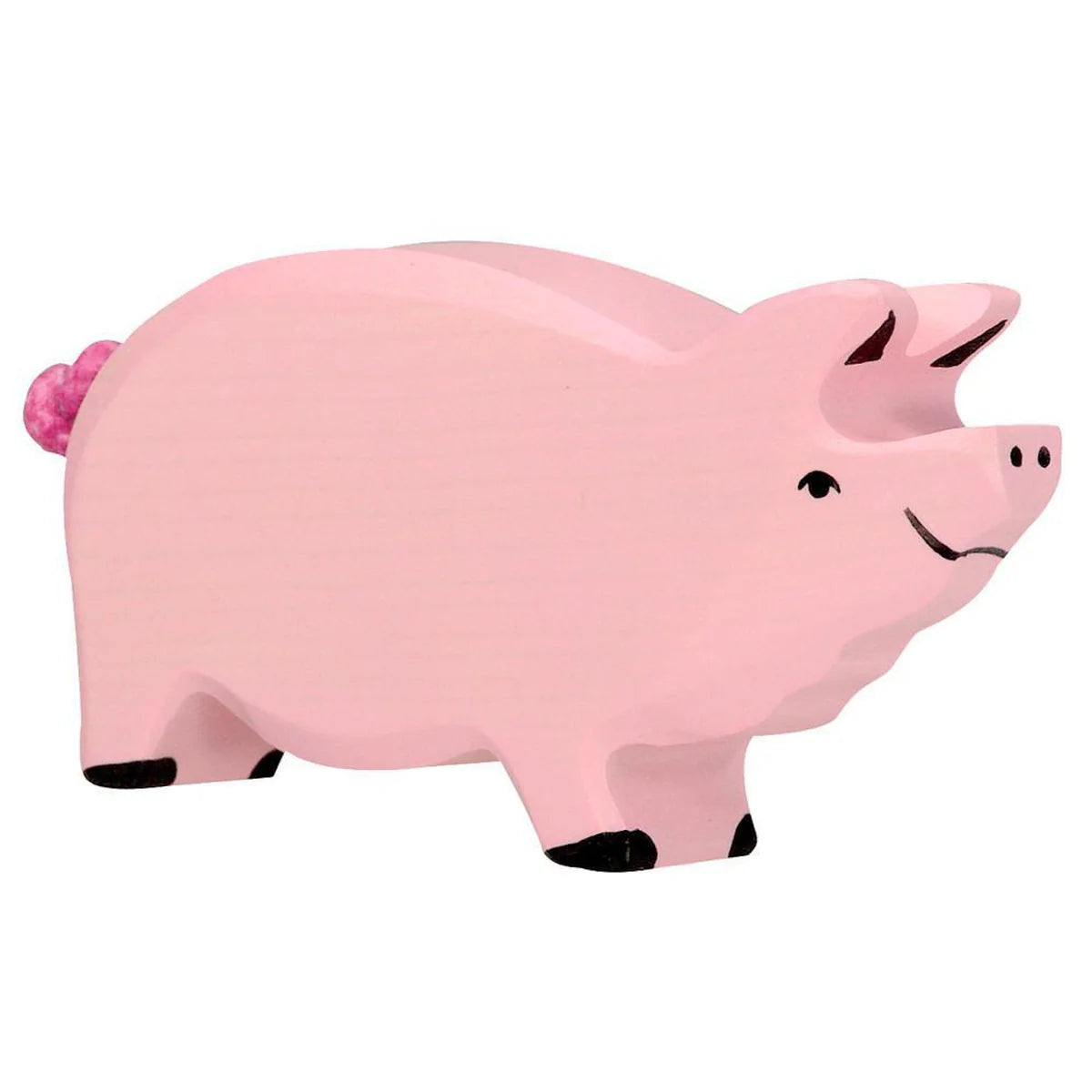 Este encantador Cerdo de Holztiger es mucho más que un simple juguete: es un puente hacia un mundo de aventuras en la granja. Con sus líneas suaves y su cálido tono rosado, está tallado a mano en madera sostenible y pintado con tintes no tóxicos, haciendo que cada pieza sea única y llena de vida.