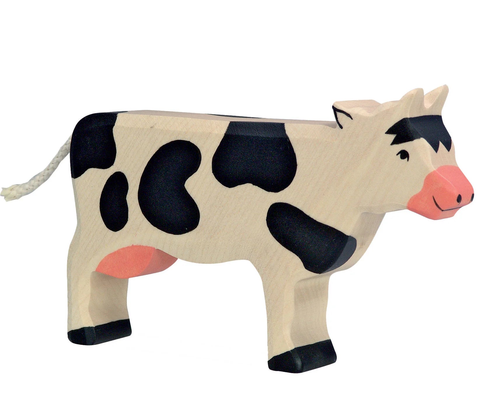 Esta hermosa vaca de Holztiger trae la esencia del campo a las manos de los más pequeños. Hecha a mano en madera natural, cada vaca es pintada con amor y cuidado, permitiendo a los niños explorar el mundo de la granja y sus animales con un toque de calidez y autenticidad. Su tamaño es ideal para las manos curiosas y, gracias a su diseño simple y detallado, fomenta el juego imaginativo y la conexión con la naturaleza. Perfecta para aprender jugando, esta vaca es más que un juguete: es una compañera para toda la infancia.